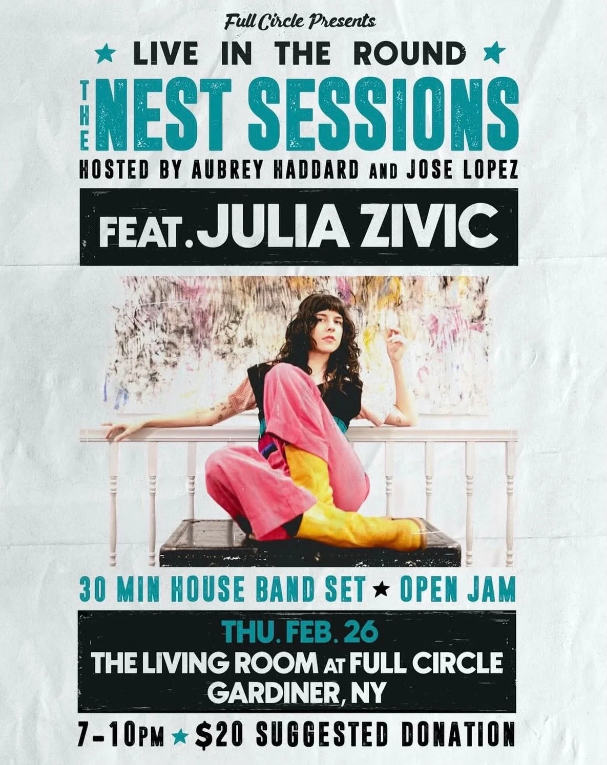 The Nest Sessions comes in the round is coming to The Living Room at Full Circle , featuring a special set by Julia Zivic.